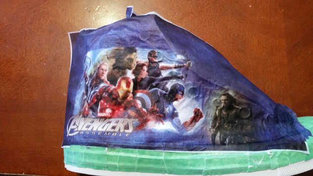 Una vez que han cubierto una parte del zapato con Mod Podge, necesita Coloque con cuidado el diseño de papel de seda sobre el zapato. Tenga cuidado porque una vez que el papel toque el Mod Podge se mojen y extraer fácilmente. Asegúrese de que colocar el papel en rápidamente, como desea el Mod Podge para ser bastante húmedo para que se pegue el papel de tejido. Presione firmemente sobre el papel. NO rocen con el papel de tejido o se ripee. Dejar secar durante 15-20 minutos antes de pasar al siguiente paso.
