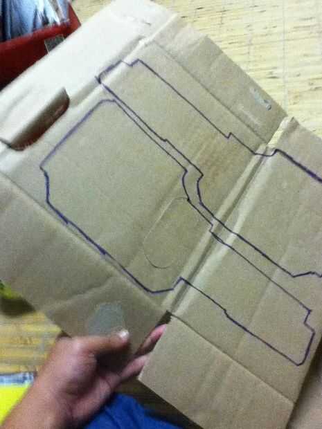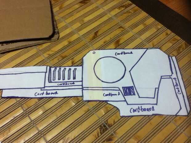 Corte hacia fuera su blaster 2D y traza sobre la cartulina. Desde sus fabricación dos lados que desea duplicar ambos lados. Resulta que todo lo usé en la cartulina.