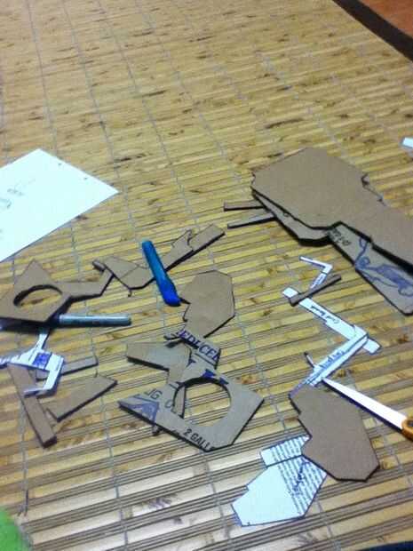 Corte todos los detalles de la pistola de papel y corrió sobre un cartón.