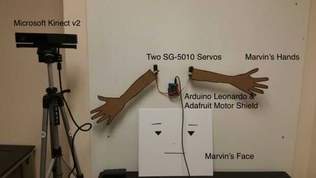 Una máquina windows (idealmente Windows 8) con Kinect SDK v2 que actúa como un puente entre Kinect y Arduino (por desgracia, existe ninguna otra manera).