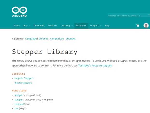 Stepper.h contiene constructores para apoyar 2 conductores y 4 motores de conductor. Para cada motor, el usuario especifica el número de pasos por revolución del motor y los números de pin digital de Arduino que controlarán el motor.