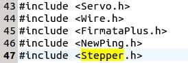 1. Añadir stepper.h a la lista de "cabecera incluye" cerca de la parte superior del archivo:
