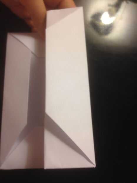 Doblar el cuadrado interior para conseguirlo. Luego, doblar lo dos hacia el exterior para obtener la segunda imagen. Abrir los pliegues y doblar los triángulos del bebé hacia el interior. Luego doblar hacia abajo para obtener la forma la luz del cuadro. Repita en ambos lados.