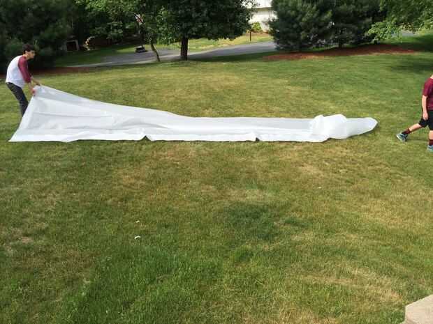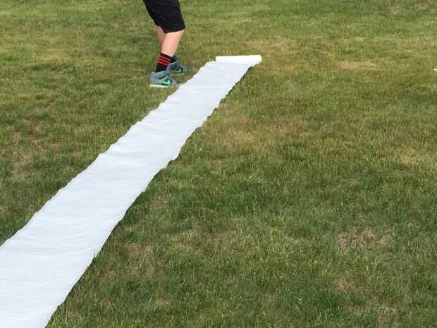 cada año nuestra escuela cuenta con una jornada deportiva durante la última semana de clases.  Este año construí un tobogán hacia abajo de los escalones de la entrada de la escuela como una de las actividades para los niños (y adultos) disfrutar.Paso
