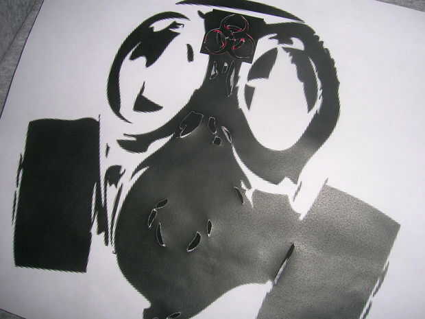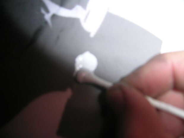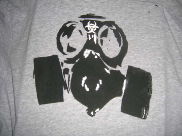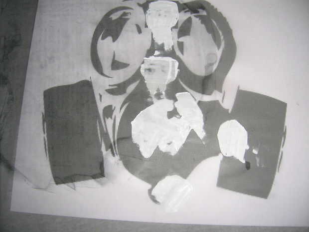 para este diseño realmente no necesita una 2ª capa pero para su beneficio lo hice 2. ahora imprimir una segunda foto de tu diseño (mismo tamaño) y cortar su 2da capa y coloque con cuidado el 2 º papel "stencil" encima de la camisa. Asegúrese de que su donde su supone que ser!! Repita los pasos con la fijación de la pantalla abajo etc, ahora con un q-tip (esto es para las capas segunda pequeño como el mío, para grandes repiten la capa forma 1 se hizo) con aplique Blanco [para este caso] saque la pantalla y pelar lejos capa 2.