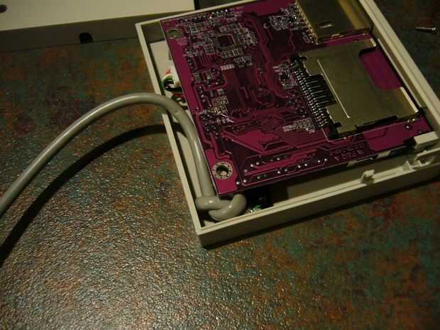 Tiempo ahora a poner todo junto... Montar la placa en la caja de plástico y el alambre con el nudo de serpiente en la esquina como se muestra... Esto tiende a atasco el cable en el que permitirá un robusto cable de salida.