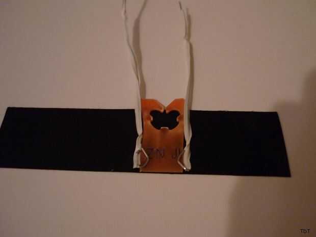 Poner los dos cables de 'P' en la cinta, una a cada lado de la parte de plástico. (ver foto)