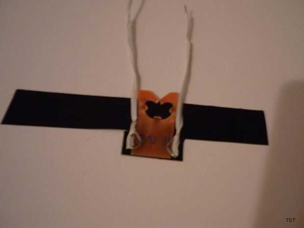 Poner la parte de plástico del lado pegamento-de un trozo de cinta aislante de 1,5 pulgadas. (aprox 1/3 pulgadas de una frontera, no como yo; D)