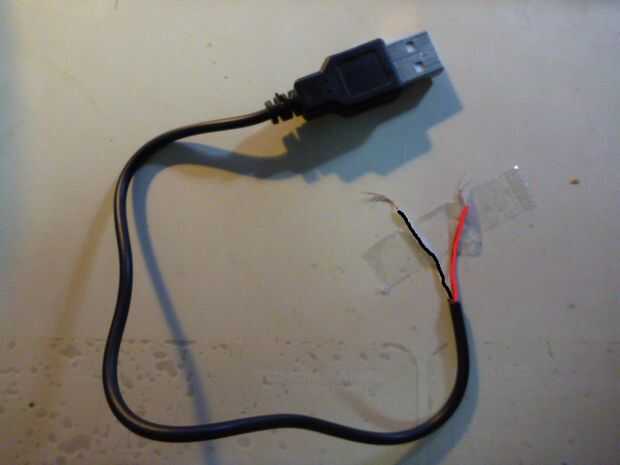 luego preparar el cable. tira al pequeño + y -. Corte el otro blanco y verde