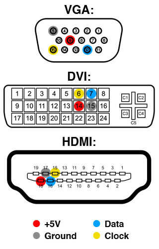 Una nota sobre la alimentación de 5V: corriente disponible es muy limitada; cerca de 50 mA según la especificación DDC. Mayoría de los dispositivos I2C sip un poquito de corriente, por lo que debería ser posible ejecutar varios a la vez... pero si utilizar más de uno o dos LEDs (u otros dispositivos de relativamente alta corriente), debe proporcionarse alimentación externa.