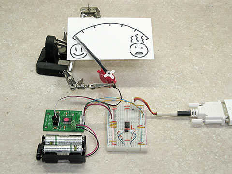 Las imágenes aquí muestran una plataforma de prueba que demuestra varios dispositivos I2C en acción. El equipo continuamente periódicamente lee la temperatura de un sensor de temperatura I2C, registra estos datos en un chip EEPROM serie I2C (sí, sólo puede imprimir a un archivo, pero esto fue demostrar aún más aplicaciones de I2C), y luego un servo (a través de un controlador I2C) sirve como un dial indicador improvisado. Con el código de biblioteca y de la muestra para estos dispositivos ya en el lugar, sólo tomó unos minutos para armar este demo (y sobre todo fue en la fabricación de la esfera del indicador).