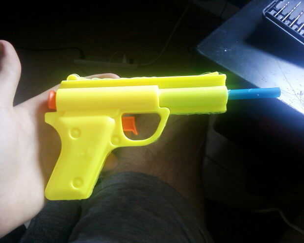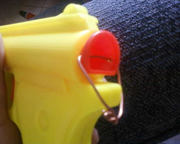 Volver a poner todo en la pistola y usar el pegamento caliente para armar nuevamente las mitades, utilice un cuchillo para cortar todo el pegamento extra una vez que se seque.