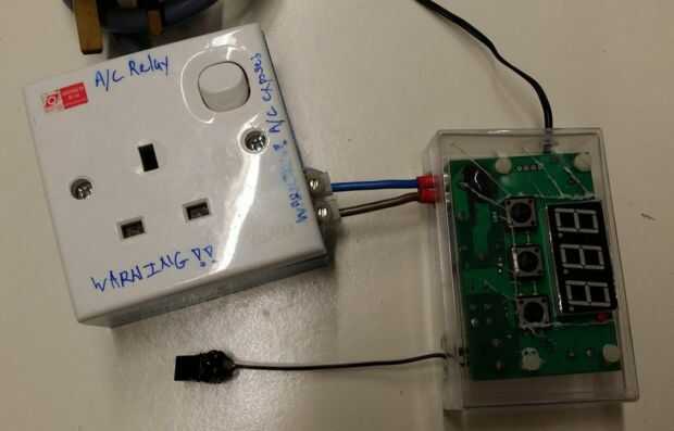 para ser utilizado como una extensión. Ahora, en vez de live wire (color marrón, estándar británico) va directamente a la toma del perno donde se supone que es; hacer un "circuito abierto" en el cable vivo y conectar los extremos expuestos al tornillo de abajo del bloque de terminal. Este bloque terminal actúa como un "interruptor" que es controlado por el relé en el módulo de controlador de temperatura. Los cables de puente (en este caso el azul y el marrón los cables en la foto) son necesarios para conectar al conector de carga de CA del módulo de controlador de temperatura. Ningún esquema de color para el puente de alambre. He usado marrón y azul de los contenedores de reciclaje. Si quiere ser coherente con el color del hilo, utilice cable de color marrón.