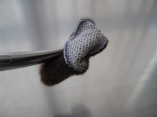 Si tira demasiado duro, sus pinzas hemostáticas pueden salga de la tela y tire de la piel, así que ten cuidado.
