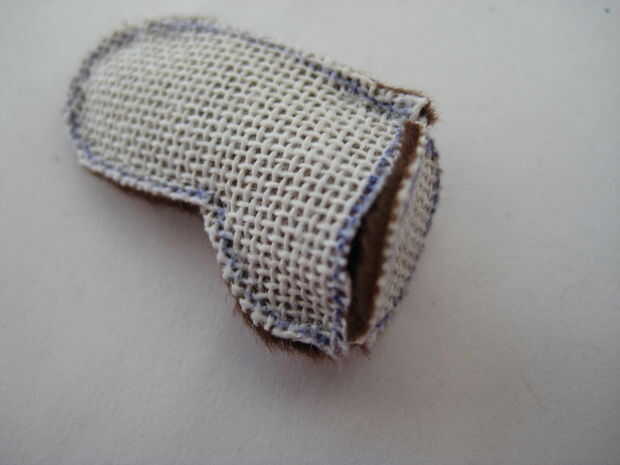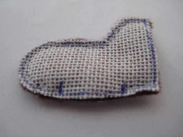 Ahora inicie junto a uno de los puntos simplemente viró y coser todo el camino alrededor de la almohadilla, colocar a la almohadilla a la pieza de la pierna.
