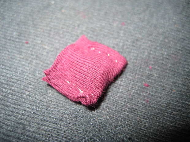 El compartimento de la batería, cortar un rectángulo de tela elástica, doblar por la mitad y coser los lados juntos. La bolsa resultante debe ser sólo lo suficientemente grande como para exprimir las dos pilas en. (Las baterías deben apilarse de modo que el lado negativo de uno toque el lado positivo de la otra).