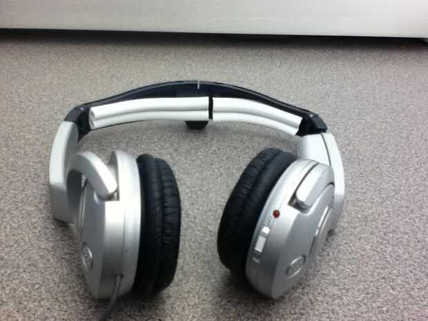 Había sólo recogí algunos Burletes autoadhesivos para sellar alrededor de mi puerta de entrada (aproximadamente $5), y me di cuenta de que esto sería un gran trabajo en hacer mis auriculares más cómodos. Simplemente cortar dos tiras de las sobras a la longitud correcta, pelado forro y había pegado en la parte superior de los auriculares. Usé dos piezas para que los auriculares se pliegan todavía.