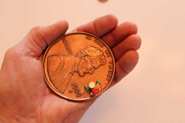 Paso 2: Encontrar penny gran réplica y comparando con penny estándar