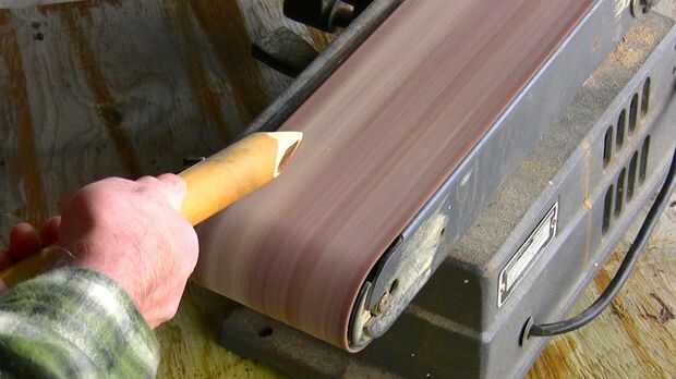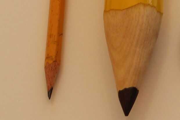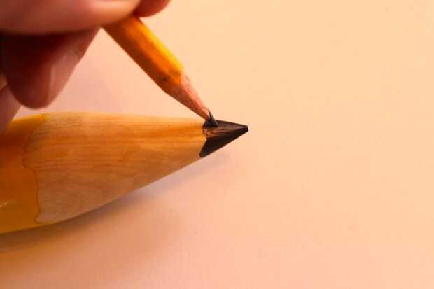 Tenía una longitud corta de 1-1/8 de pulgada madera diámetro pasador en mano que funcionaba bien para el lápiz falso. No hacer cualquier intento a escala perfectamente que el lápiz grande con el lápiz estándar - sólo fue por cómo se veía. Herramientas eléctricas hizo un trabajo rápido de formar el lápiz pero no tomará mucho más tiempo haciendo la forma con la mano herramientas (plano de mano pequeño y papel de lija por ejemplo).