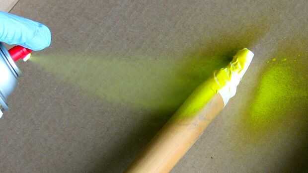 Después de formar la punta de lápiz pintaba el cuerpo con dolor de spray amarillo. (Primero protegido lo forma con cinta de enmascarar).