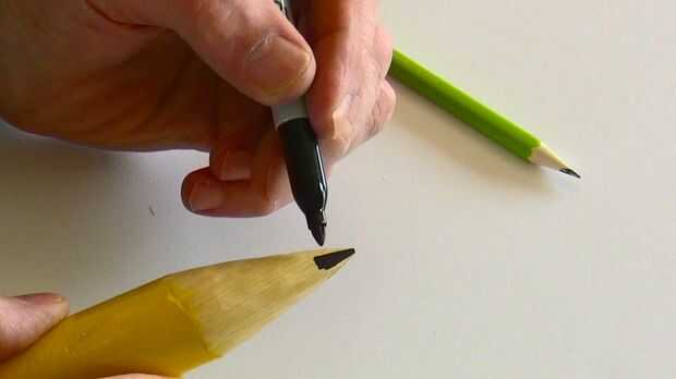 Una tinta negro marcador permanente Sharpie asumió el control a simular el "plomo" del lápiz. La tinta estaba mirando un poco plana así que fui sobre la tinta de rotulador con un lápiz normal para darle un aspecto brillante ligero.