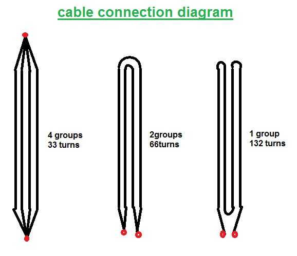 De esta manera puedo cambiar el número de vueltas al conectar los grupos entre sí. (fijate en el diagrama de conexión de cable)