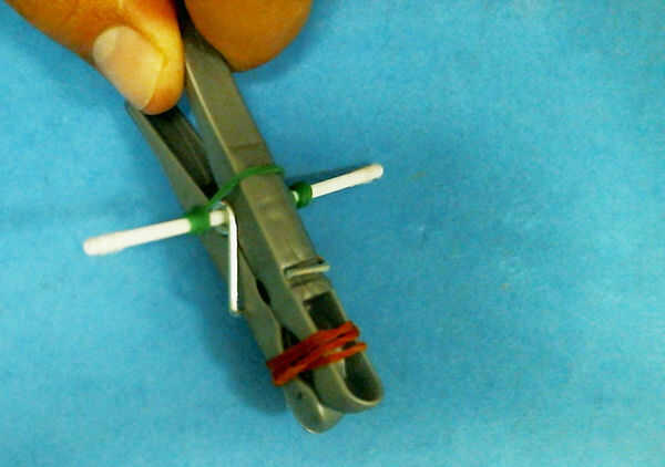 Paso 5: Enrolle la otra banda de caucho alrededor del extremo de la clavija de ropa. No a apretado!