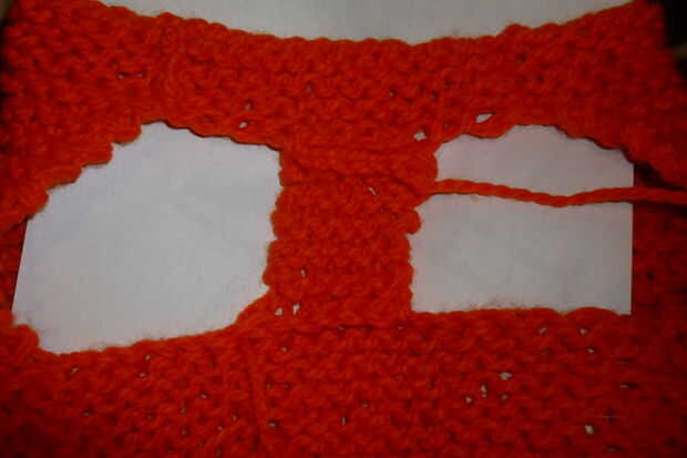 Mi último rectángulo tendrá 2 pulgadas de ancho por 2 pulgadas de largo (es realmente un cuadrado... jajaja... ahorro yo numerosos mensajes) y debe colocarse en medio del vientre de apertura, adjuntando el rectángulo del cuello al rectángulo de estómago.