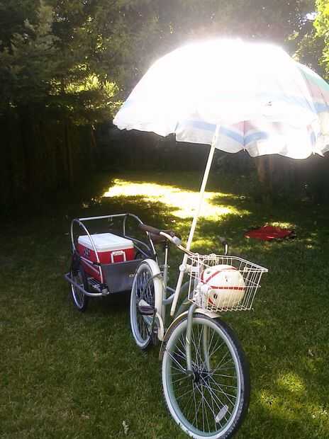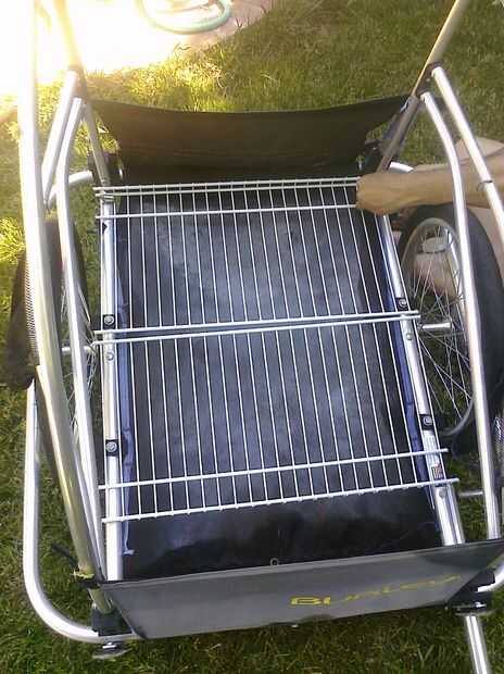 Tomar cualquier remolque bicicleta niño portador y tira de todo el tejido mohoso. Puede dejar tanto o tan poco como desee. Que tenemos tenido tela inferior bastante sólido, pero el resto era asqueroso! Sólo usted puede cortar con unas tijeras o un cuchillo.