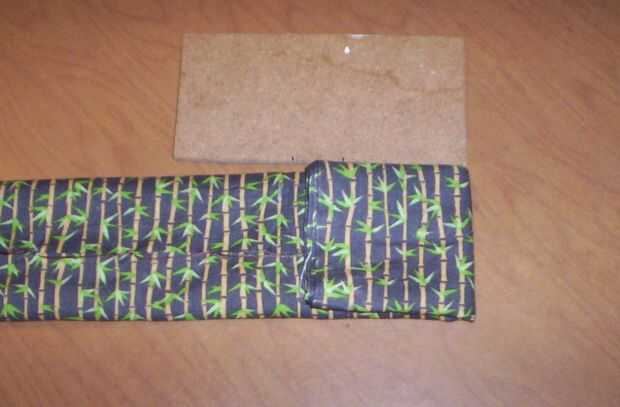 Observe las dos pequeñas marcas en mi plantilla aquí. Muestra los bordes del nudo del centro. Necesita saber donde va el nudo del centro, ya que mucho de su costura terminará por debajo de ese nudo de centro. El nudo marcas aquí son 2 cm de separación, y cada uno es 4,8 cm de sus respectivos bordes. Doble a la tela a la mitad exacta de las dos líneas (que es el centro de la plantilla).
