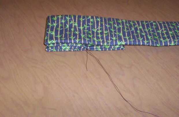 Esto puede parecer complicado, pero ts realmente no. Voltear al tejido. Doble vuelta y plegar a la tela para que coincida con los bordes del pliegue anterior. Esta manera, la costura de cosido-para arriba es siempre en el interior de la corbata. Coser las esquinas rápidamente aquí también.