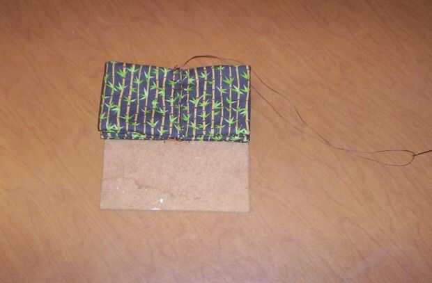 Aquí, usted puede coser por en medio de la tela. Poner al tejido junto a la plantilla para que pueda ver donde va del nudo el centro y coser en lo que gusta llamar "cordones de fútbol". Asegúrese de que usted está cosiendo a través de cada doblez. Mi manera es rápido, pero usted puede coser como quieres ya que se trata de todos va a ser bajo el nudo del centro cualquier caso. Sólo no coser demasiado mucho porque tienes más puntos para ir aquí de todos modos, como se verá en el siguiente paso...