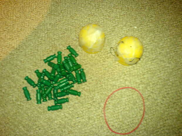 necesitarás 2 cápsulas de huevos kinder (ambos del mismo lado con el borde de) sobre 35-40 barras verdes (o sin embargo muchos puede cram en) y una banda elástica
