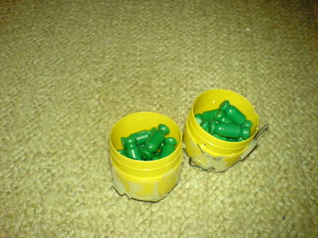 Hola, este es mi KVG lanzagranadas. Dispara unos 15 a 35 pies. Usted puede hacer más pequeño sobre armas pequeñas y también puedes hacerlo más grande con más barras a KVG gran pistola. Este es un tamaño medio. Usted puede conectar a cualquier arma co
