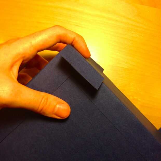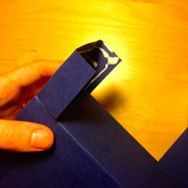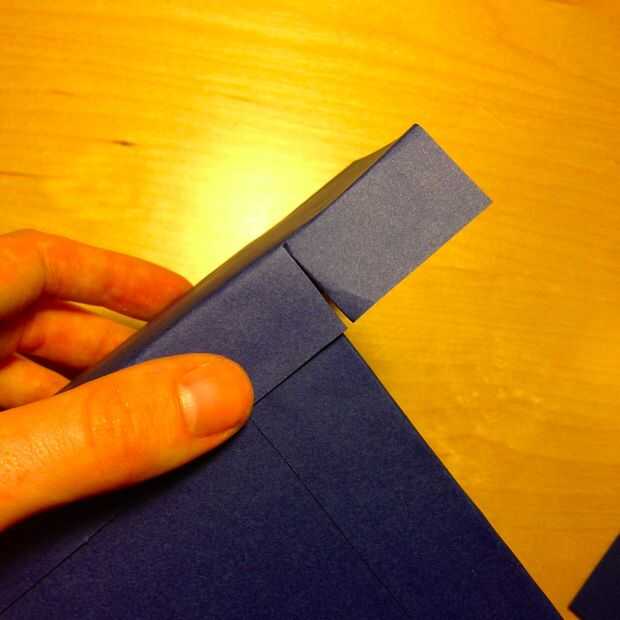 - Para los extremos cortos de la caja, podemos solamente cubrimos 1 ahora, ya que el otro está todavía abierto. Se aplican igual en los lados largos. Cortar una solapa en el borde de papel colgando del extremo y luego plegar (ver imágenes). Voila-limpiar esquinas!