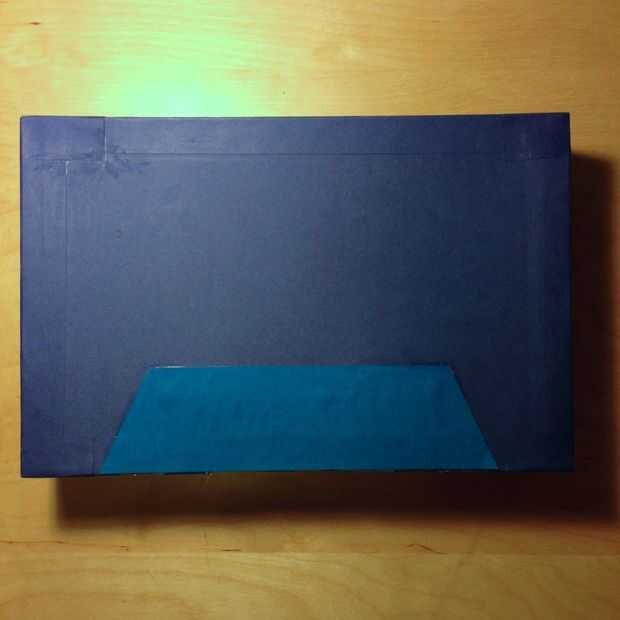 - Adhiera el trapezoide, centrándola en las ventanas de visualización en la parte inferior de la caja.