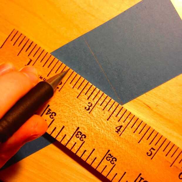 Para cortar el trapezoide, comience con un 8.5" x8.5" rectángulo. Mide 1" en cada lado sobre un borde largo y crear las diagonales entre los puntos y la base más grande del rectángulo (ver fotos).