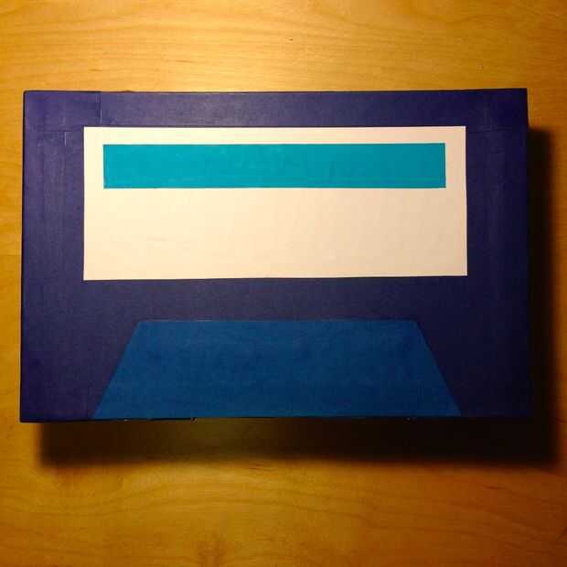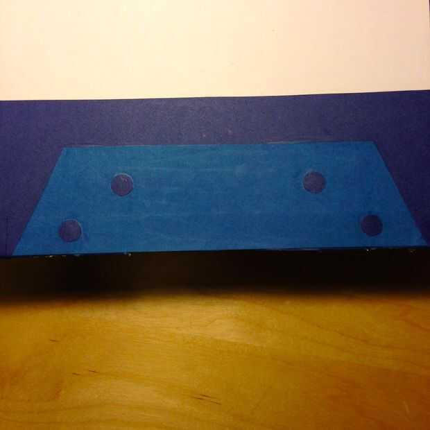 - Añadir los puntos minúsculos en el trapezoide, 4 a cada lado. (Ver fotos, o google "cinta de casete," para la colocación).