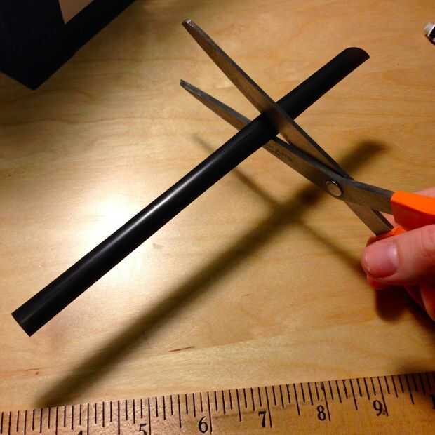 Cortar la paja boba extra para caber cómodamente dentro de la anchura de la caja; 2.5" de largo, en mi caso. Sugiero a partir de un poco demasiado grande y poco a poco corte, para que accidentalmente no hacer tus pajas demasiado cortos en la primera prueba. Si se recorta demasiado, simplemente empezar. Pajillas son baratas:).