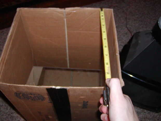 Desea medir el perímetro de la TV, no sólo la pantalla. Mi TV era de 10.25 X 11 pulgadas, y mi caja era 10.75 X 12 pulgadas. Usted quiere la TV para caber cómodamente dentro de la caja, permitiendo poca luz para escapar como sea posible. Pero no te preocupes si no un ajuste perfecto, que es lo que conducto cinta es para. La caja debe ser aproximadamente dos veces tan larga como la TV porque controlar el enfoque de la imagen por la TV en movimiento hacia adelante y hacia atrás. Después de encontrar un ideal posición que puede acortar el cuadro para asuntos espaciales.
