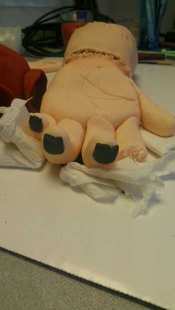 para las uñas... puede hacer cualquier color. Fuimos con fondant negro y corte los extremos de ellos. Usando agua para atacarlos se secan en pocas horas.