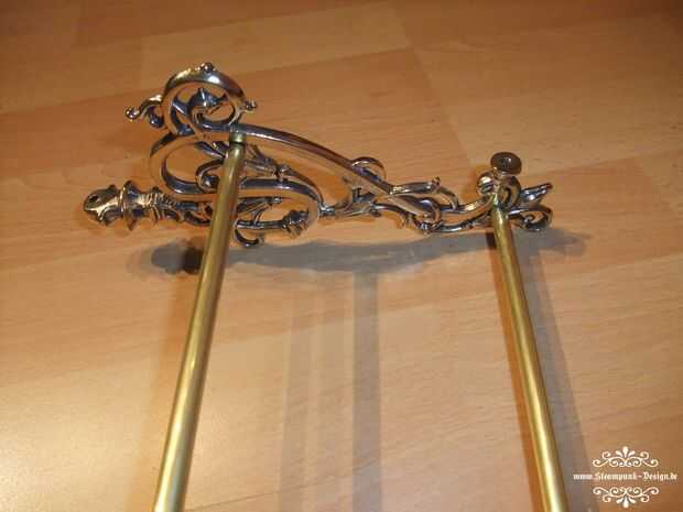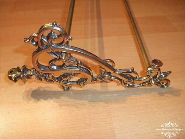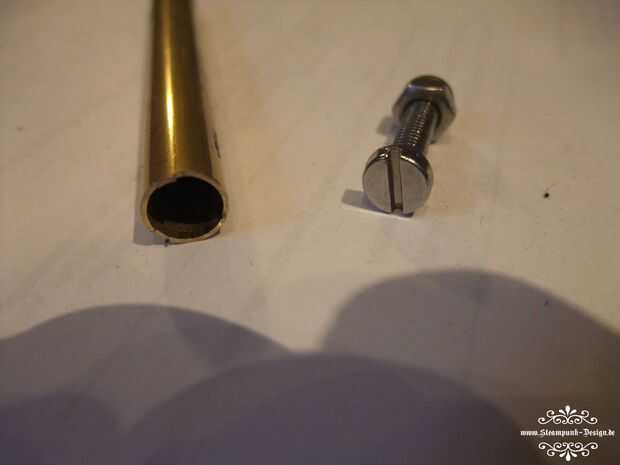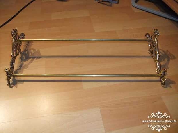 Necesita dos bastidores laterales (por ejemplo, sostenedor de vela de la pared), tubo de 1 metro de cobre 8 mm, arandelas de bronce, tuercas de latón y 4 tornillos con cabeza redonda (6,9 mm) y las dimensiones M4x30.