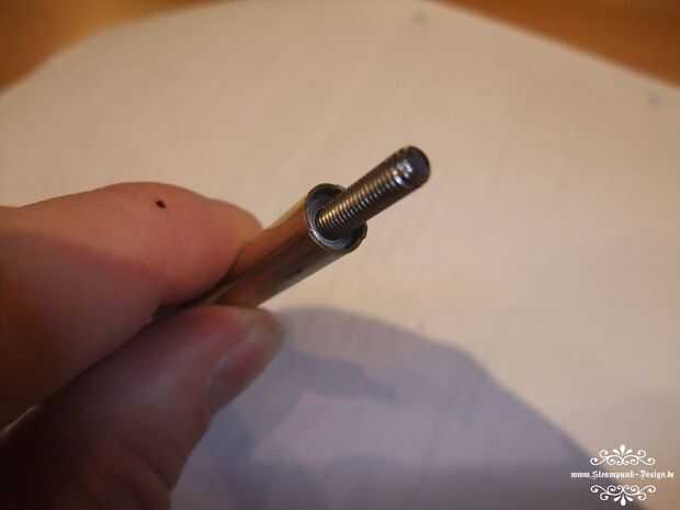 Después de que tuviera el grado, los tornillos estaban soldados en el tubo en esta posición. Para esto que he empujado un poco la soldadura flux y soldadura en el tubo y calentado con un lápiz de quemador.