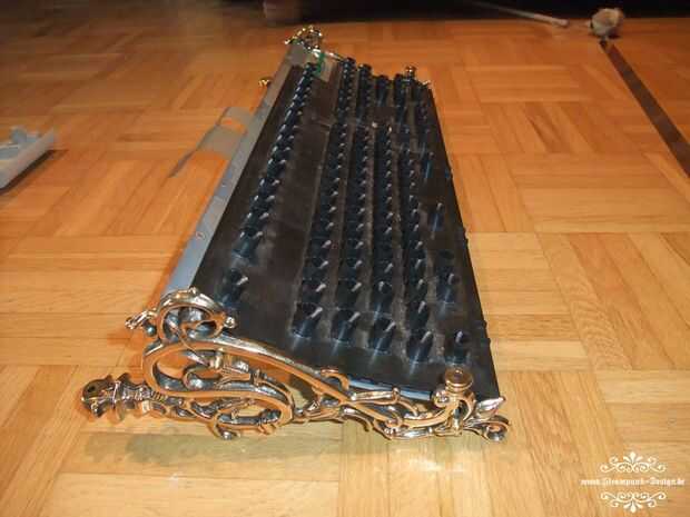 Ahora estamos buscando la mejor posición de las tuberías a través de los paneles laterales hasta que el teclado en un ángulo razonable. Encuentro unos agujeros perfectos y no había perforado algunos.