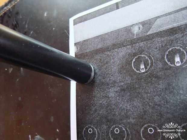 La tarea ahora es transferir la posición exacta de los agujeros para los botones en el panel de madera.