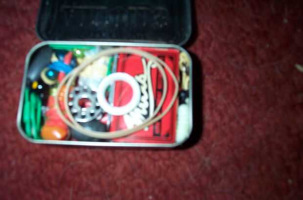 Tomar negro gancho terminado con el blanco atraer en él y ponerlo en el lado derecho de la can y sus 3 pequeños ganchos atarlos junto con una pequeña banda de goma y luego ponerlas al lado derecho. tomar 2 gomas y ponerlo alrededor de la seda dental.