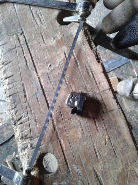 Tomar la sierra cortan la 'cabeza' del encendedor y también cortar el PVC a su tamaño de anillo ideal.