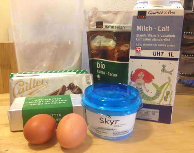 - 150g de chocolate oscuro (Suiza) (70-80%), picado