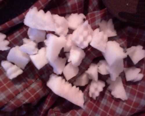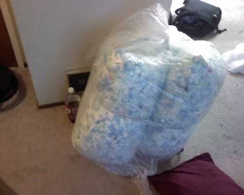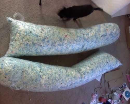 Esta espuma es buena, no genial... bueno tal vez. Hay diferentes tipos de espuma de consistencia y textura diferente, pero todo hallazgo en pedazos pequeños. Sin embargo un tipo de espuma blanca cayó hacia fuera en unas pocas piezas grandes, no grande tratar solo un poco de ripeo más tarde y problema resuelto. Y por el precio, wow, me alegra que la espuma se me indicó. No llamo mi bolso completo todavía, pero los bolsos son sin duda bien embalados, incluso después de dejar aire todavía eran bastante densas, así que yo diría que usted puede hacer los cálculos para averiguar cuánto necesita (en volumen, así que en mi caso necesito 2.5'x2. 5'x 7' por valor de espuma) y tal vez Añada otra bolsa pequeña o dos más, entonces lo que usted piensa , porque es necesario recordar que la espuma se aplasta (obviamente) y tal vez se estira la tela que utiliza o al menos reforma.