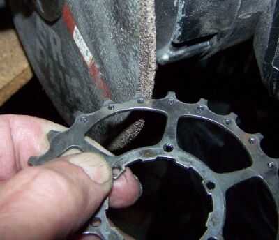 Generalmente no es una buena práctica para moler desde el lado de una muela abrasiva, pero va a quitar lo poco material que no hay riesgo. No es pulido en la parte inferior de la garganta. Hacerlo podría resultar en ajuste desigual de la cadena sobre los dientes de la corona. Sólo tocar los dientes de la rueda por un segundo o dos y pasemos al siguiente diente.